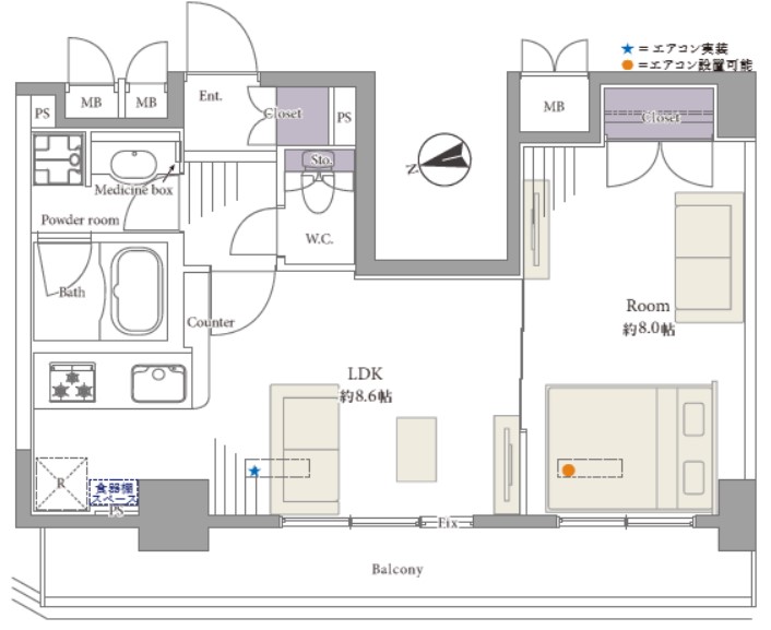 1LDK+2Closet 専有面積(壁芯)/40.65㎡ バルコニー満席/9.3㎡